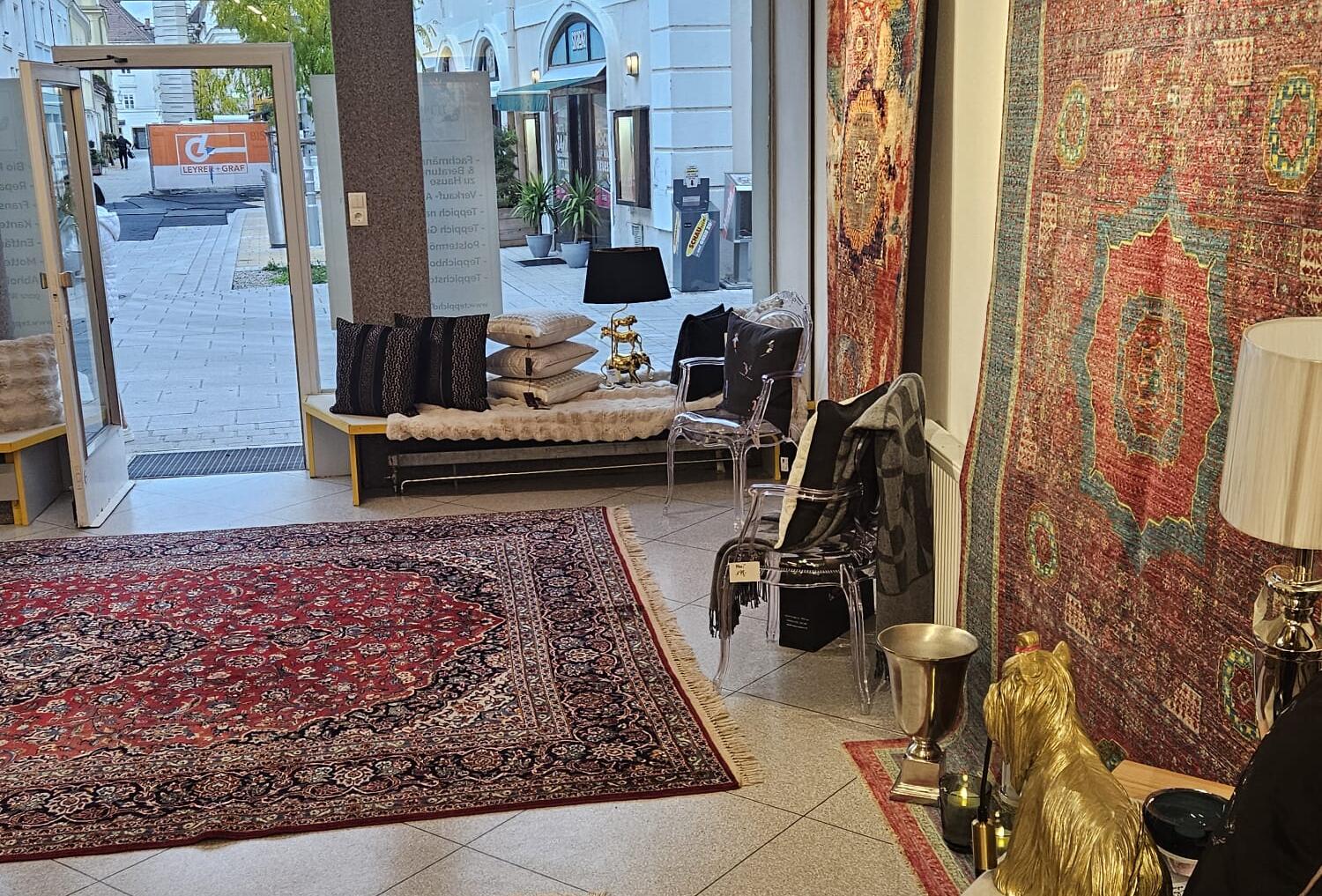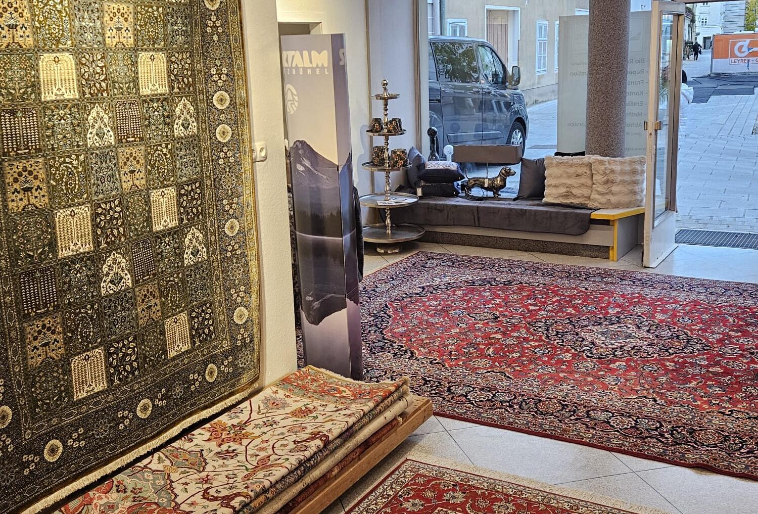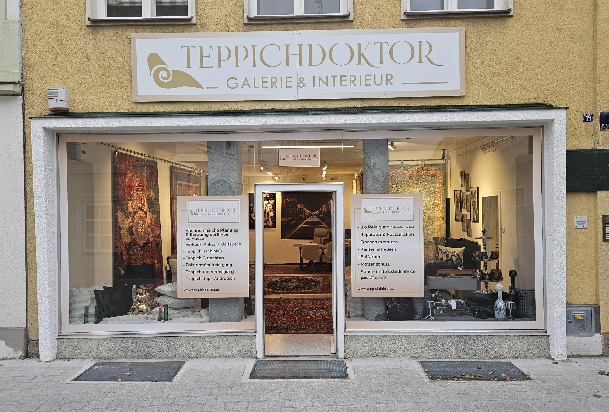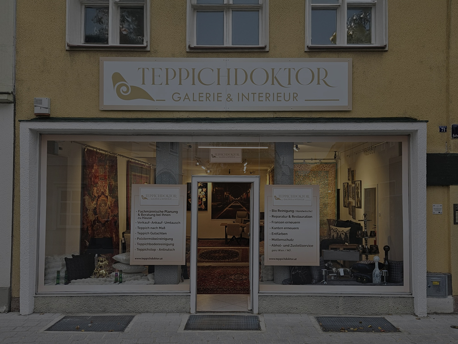 Wir freuen uns auf Ihren Besuch! Denken Sie an Ihren Teppich! Wir stehen Ihnen gerne für Ihre Fragen zur Verfügung und freuen uns auf ein persönliches Gespräch! Teppichdoktor Galerie & Interieur in Sankt Pölten Fuhrmannsgasse 2/Ecke Schreinergasse3100 St. Pölten Mo. – Fr. 10:00 bis 16:00 Uhr (& nach tel. Vereinbarung) +43 2742 20260 info@teppichdoktor.at Ihre unverbindliche Anfrage! Ich stimme der Verarbeitung, des Sammeln und des Speicherns meiner Daten zu. Impressionen aus unserem Geschäft in St. Pölten brandneuer showroom zum stöbern